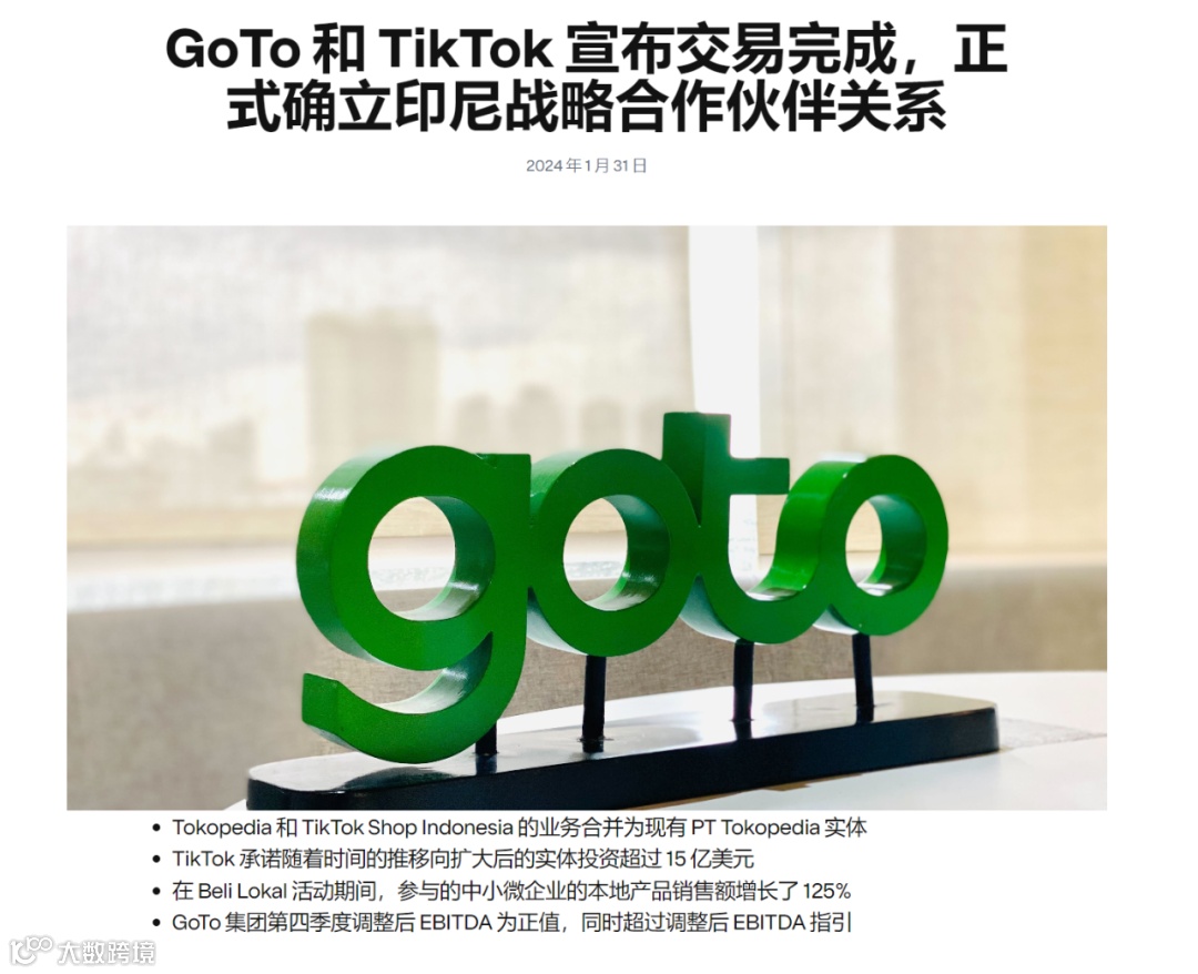 GoTo 集团首席执行官帕特里克·瓦卢霍 (Patrick Walujo) 在一份声明中表示:“今天标志着与 TikTok 的合作关系完成,这将继续为印度尼西亚及其 MSME(微型、小型和中型企业)带来利益。这也是 GoTo 集团向前迈出的一大步。”