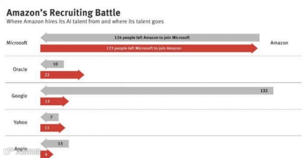 一张来自电子发烧友的AI人才流动图表 ,道出了这场竞争的残酷性。2024年 ,亚马逊有132名AI工程师流向谷歌 ,却只从对方吸引来13人;124人投奔微软 ,反向流入123人——净流失103人的人才赤字 , 曾是亚马逊AI战略的最大痛点。