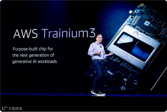 2025年12月3日,AWS re:Invent大会现场 ,首席执行官马特 ·加曼举起手臂的瞬间 ,背后大屏幕上"Traini um 3"的紫色字样与芯片特写形成强烈视觉冲击。