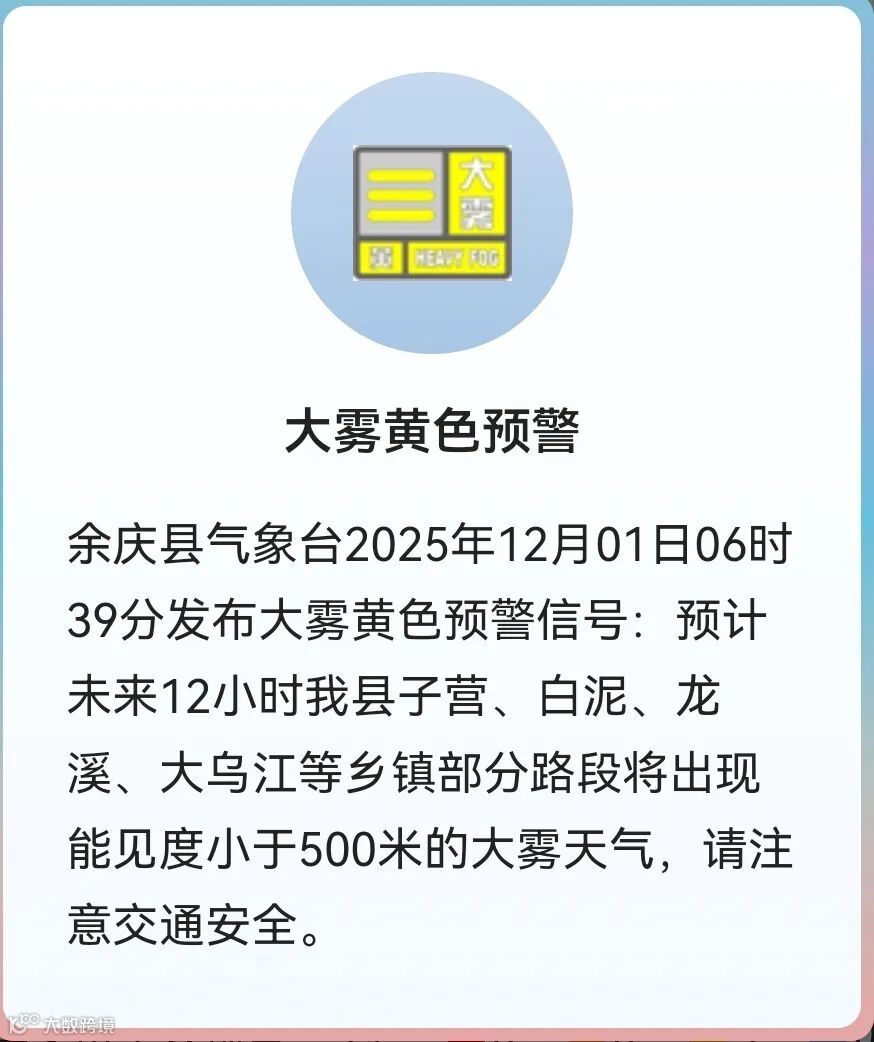大雾黄色预警信号