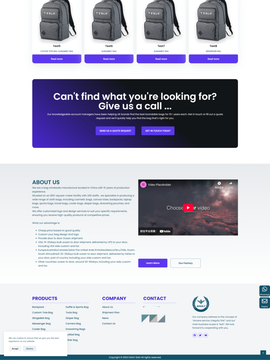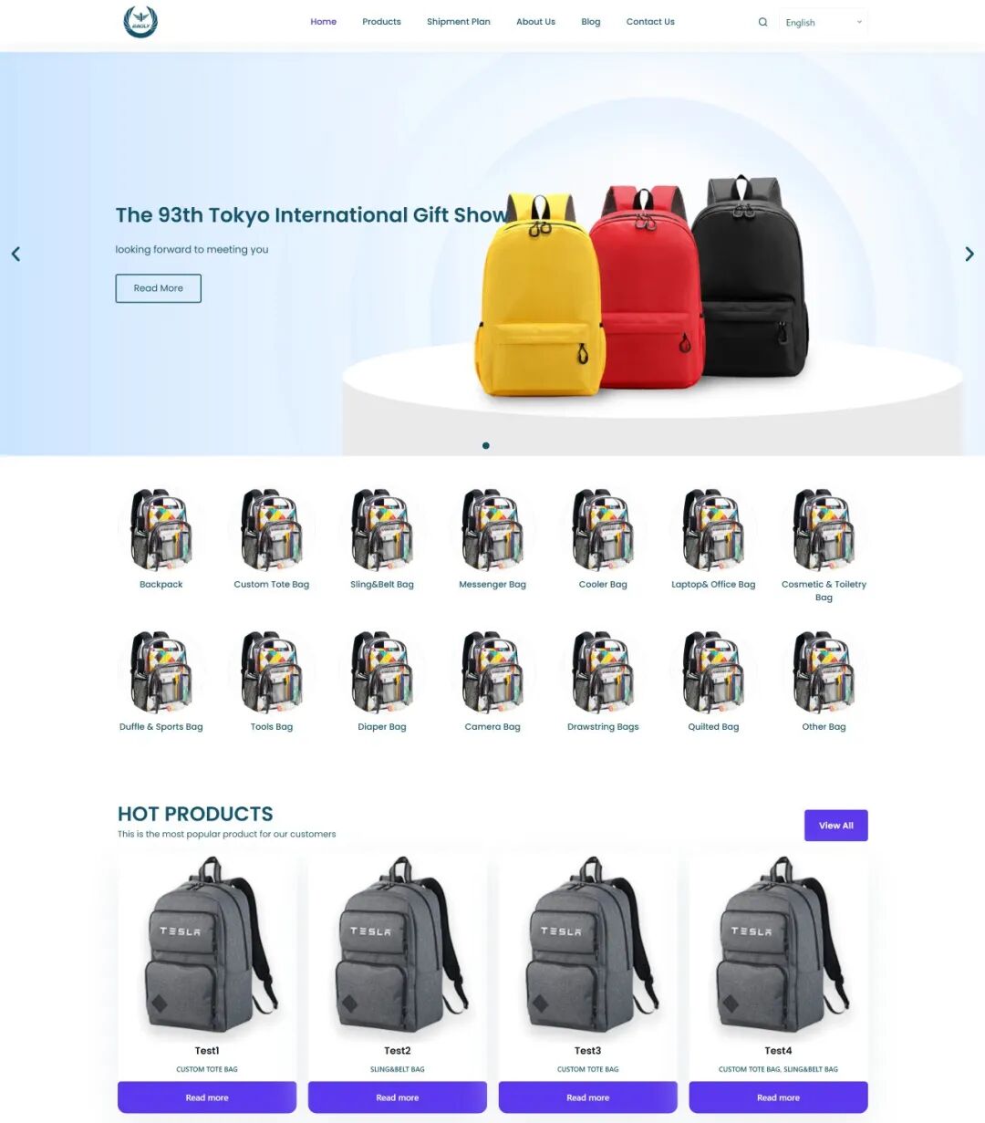 这是我们为一家专业的 箱包设计与制造企业 打造的外贸独立站。网站全面展示了企业在 背包、旅行包、电脑包、运动包、保温包及定制礼品袋 等领域的生产优势与创新设计能力,致力于为全球客户提供 高品质、个性化、具竞争力的箱包产品与定制服务。