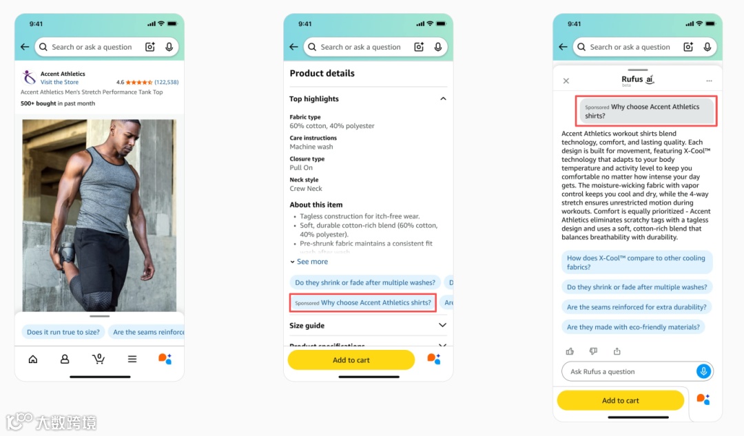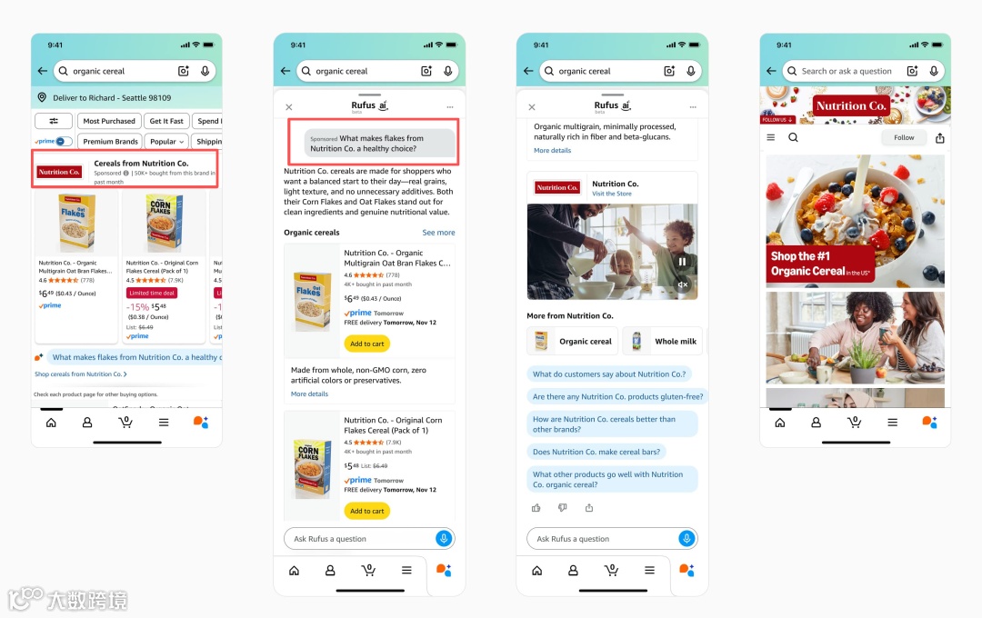 当消费者通过AI购物助手Rufus提问“适合户外露营的轻便水壶有哪些?”时,系统将生成自然对话式回复,而品牌产品可作为“赞助答案”嵌入其中,以更原生的方式触达用户。