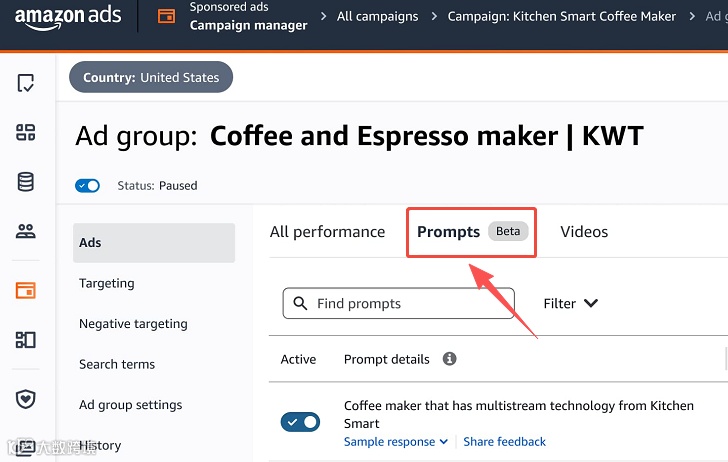 近日,亚马逊广告后台悄然上线一项新功能——“提示词(Prompts)· Beta”,面向美国站卖家测试。这一更新标志着平台广告逻辑正从关键词匹配迈向AI驱动的语义理解时代。