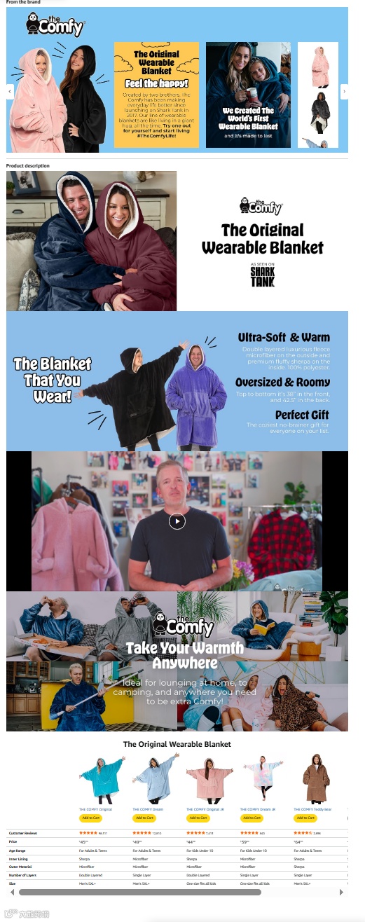 在详细描述中嵌入“the comfy blanket hoodie”“christmas gift blanket hoodie”等高意图长尾词;完成品牌备案后务必制作A+页面,配以真实使用场景图,增强信任感与转化效率。