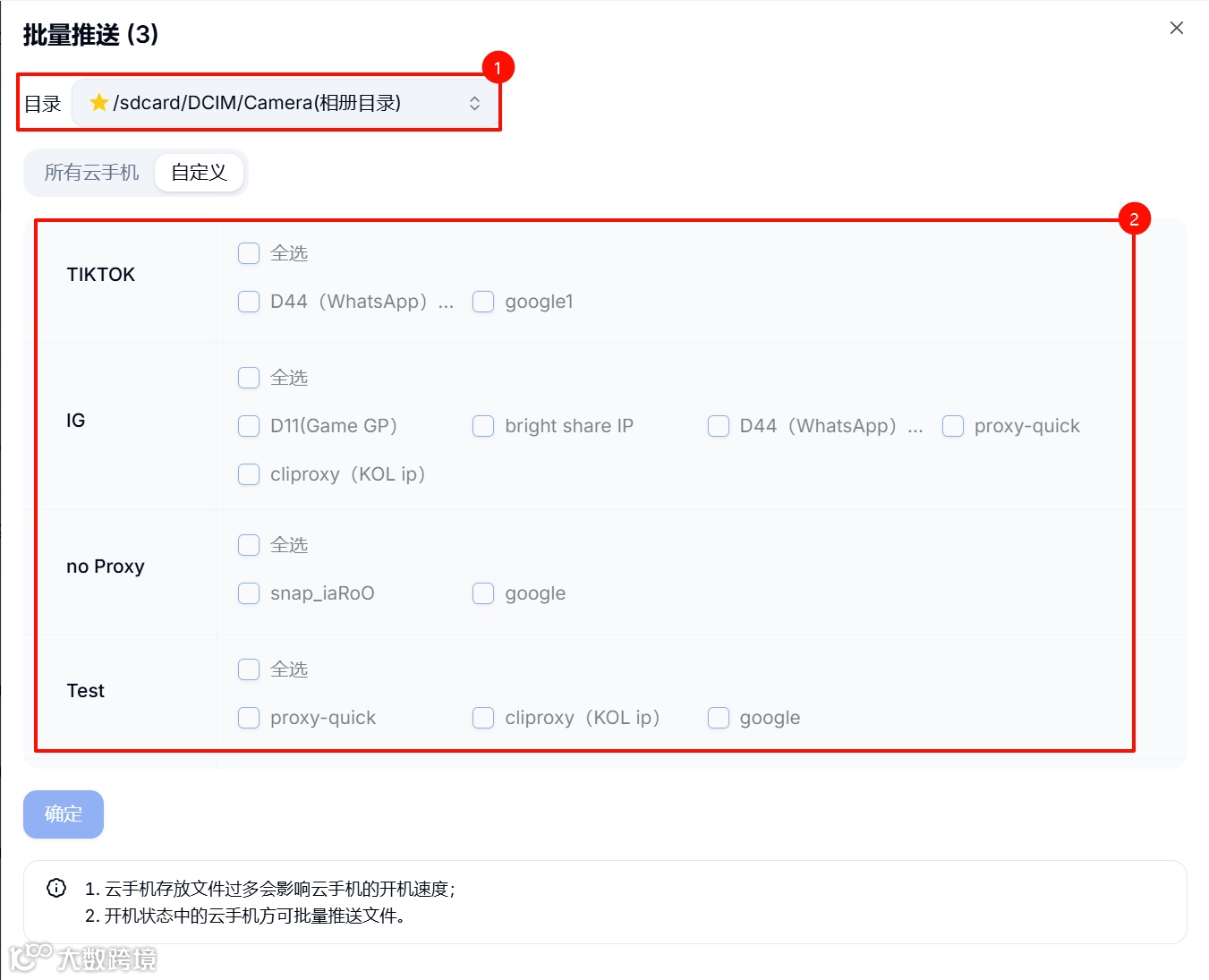 随着TikTok的风控加严,不同TikTok账号使用相同素材可能会降低账号推流权重,所以DuoPlus后续会新增将不同的文件推送到不同云手机的批量功能,提高TikTok矩阵运营的灵活性和工作效率。