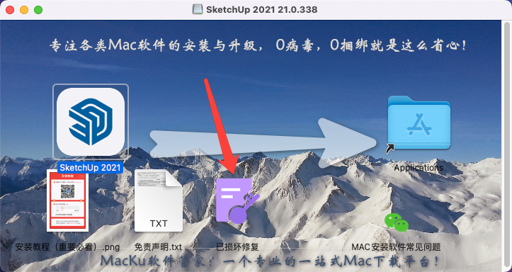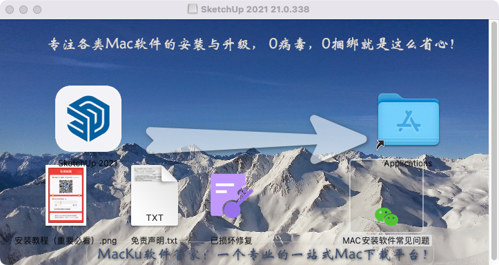 1. 在公众号下载软件得到压缩包,双击解压【Sketchup 2021.dmg】安装包