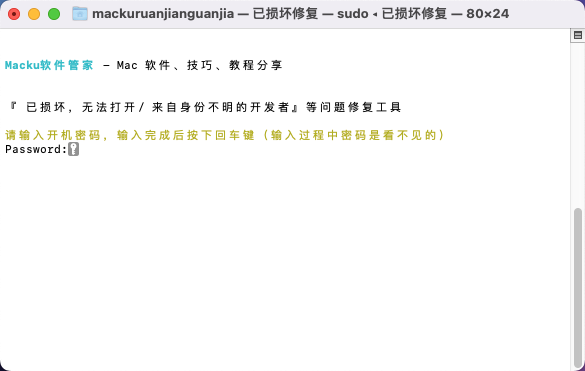 4.在这里输入【Mac】的账户开机密码,密码这里是看不见的,确认无误输入完成之后,按下【回车】
