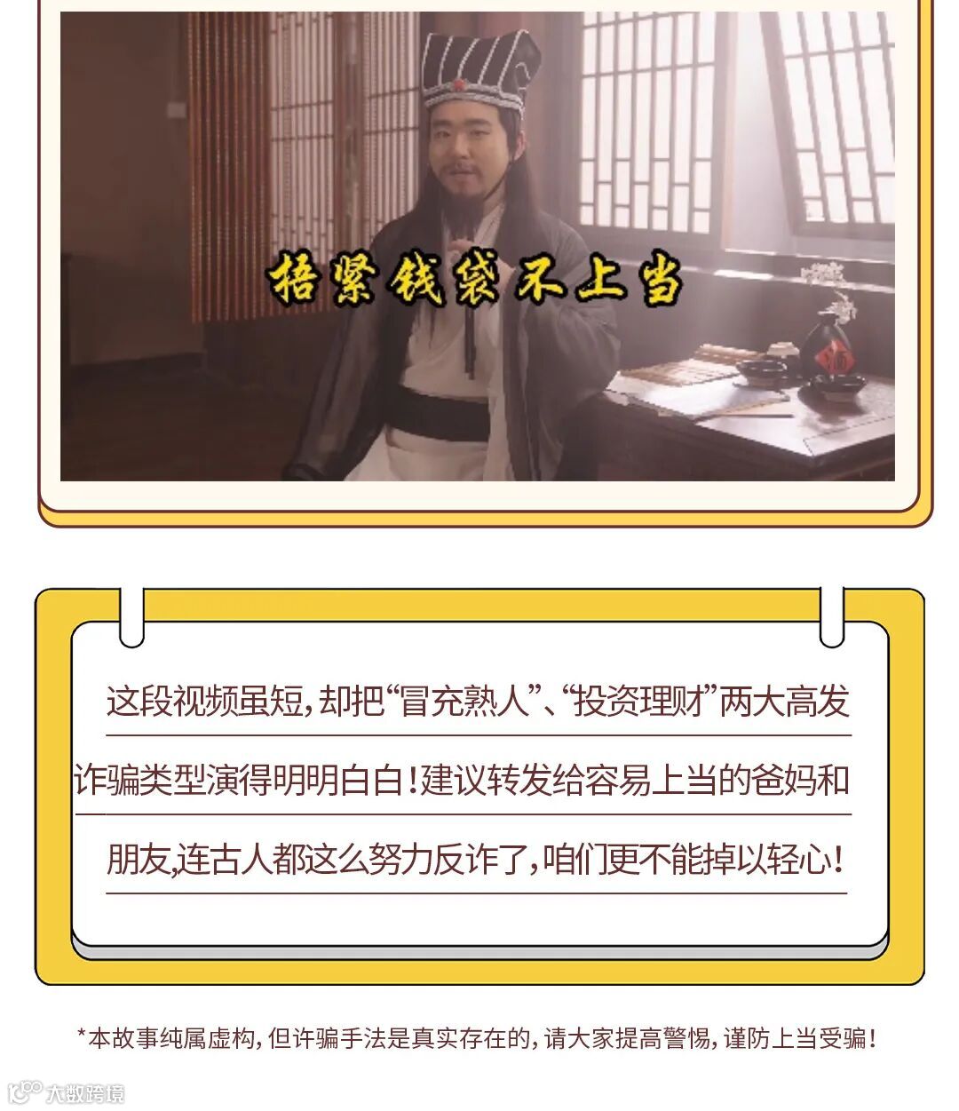 为深入贯彻落实党中央、国务院关于打击治理电信网络诈骗的决策部署,全面提升社会公众防诈意识和识骗能力,近日,由人民银行深圳市分行、深圳市反诈机制办、深圳金监局组织的2025年深圳市金融行业反诈短视频大赛,共收到31家金融机构报送的49部高质量作品。其中,《三国反诈》作为优秀作品之一脱颖而出,充分展现了深圳金融业在反诈宣传中的创意与巧思。