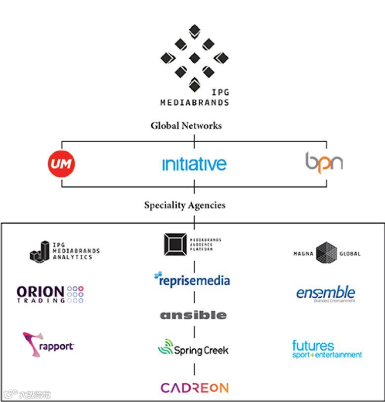 其中IPG Mediabrands集团是IPG的数据管理和媒体购买部门。下属子公司有:Cadreon,IDMedia,Initiative,IPG Media Lab。