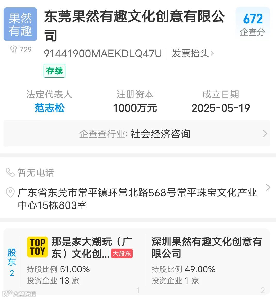 据报道,TOP TOY已经与十几家设计师工作室建立了合作关系,今年5月份更认缴出资510万元,与另一家潮玩品牌HiTOY海创文化成立合资公司“果然有趣”,持股比例达到51%。