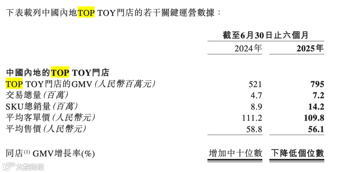 报告期内,TOP TOY通过多渠道实现总GMV为10.48亿元。其中,中国内地门店GMV同比上涨52.59%至7.95亿元,平均客单价下滑1.26%至109.8元;在线渠道GMV为1.27亿元、其他渠道获得的GMV为1.26亿元。