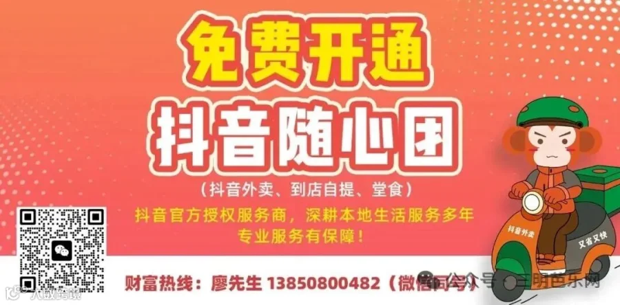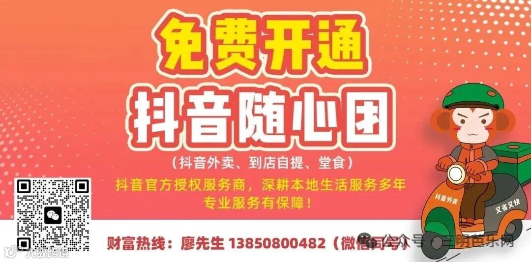 我们推出抖音团购、外卖免费开通活动