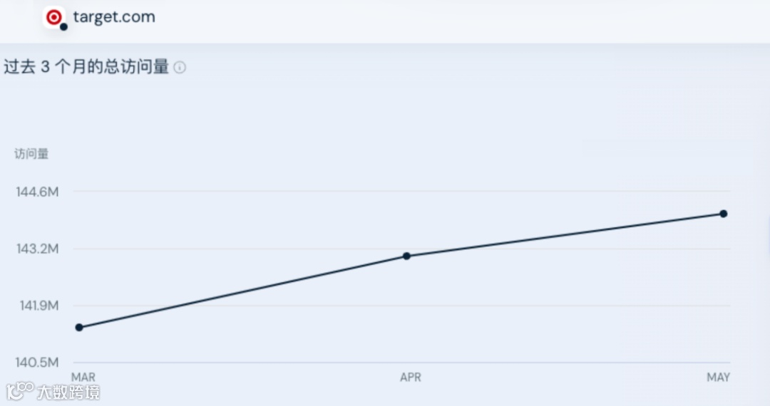 Target.com 一站式的购物体验和便捷的物流服务吸引了大量忠实用户。Similarweb数据显示,近三个月Target.com的总访问量达到4.29亿,每月均超过1.4亿,并且呈现上升趋势。