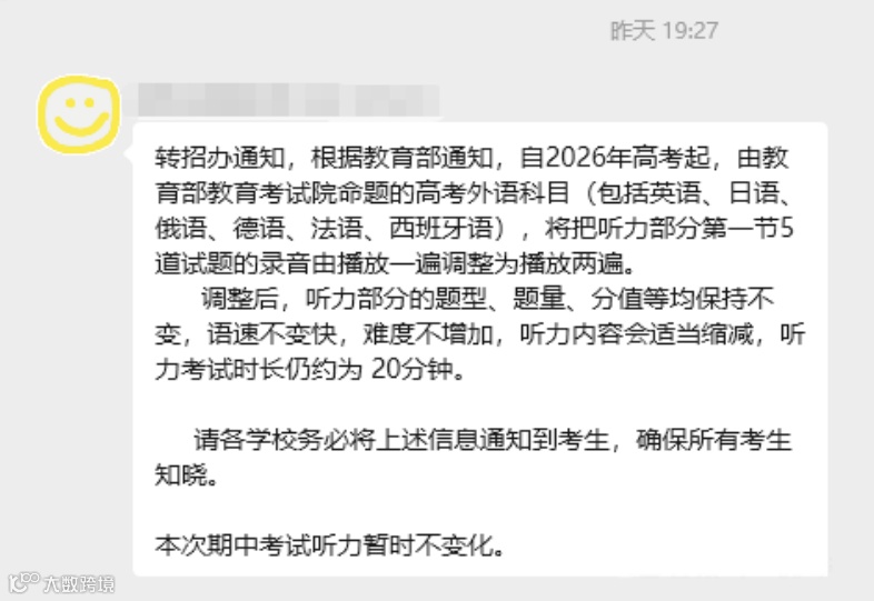虽然通知明确“难度不增加”,但考试改革的方向通常是“减形式、增内涵”。当技术性障碍(只听一遍)被降低后,命题可能会更侧重于考查真正的听力理解能力,如: