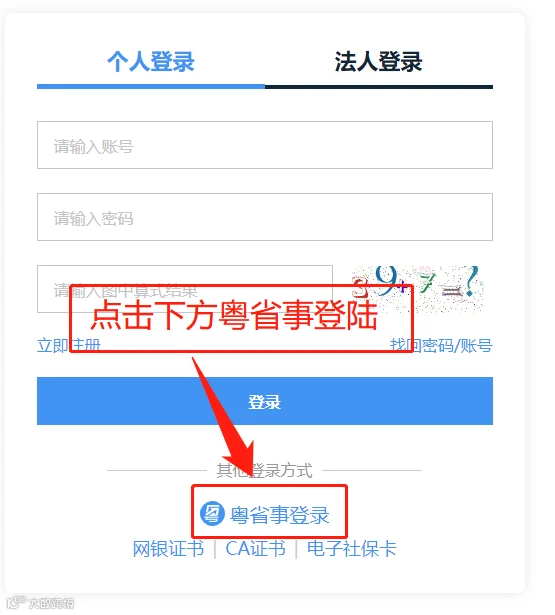 个人用户请选择“个人登录—粤省事登录”,扫描二维码并通过人脸识别完成验证;企业用户请选择“法人登录”并上传相应资料。