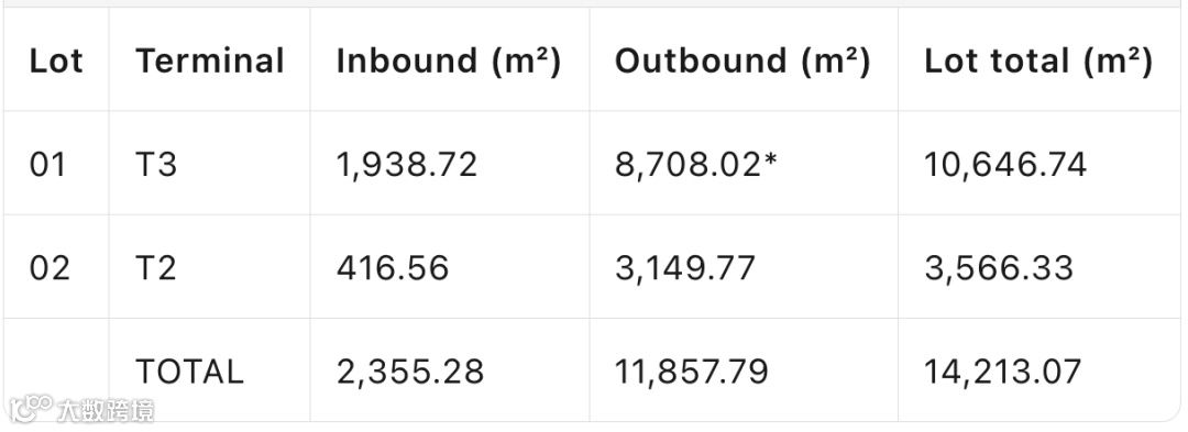 *T3出港区拆分:T3E 8,310.19㎡ + T3D 397.83㎡