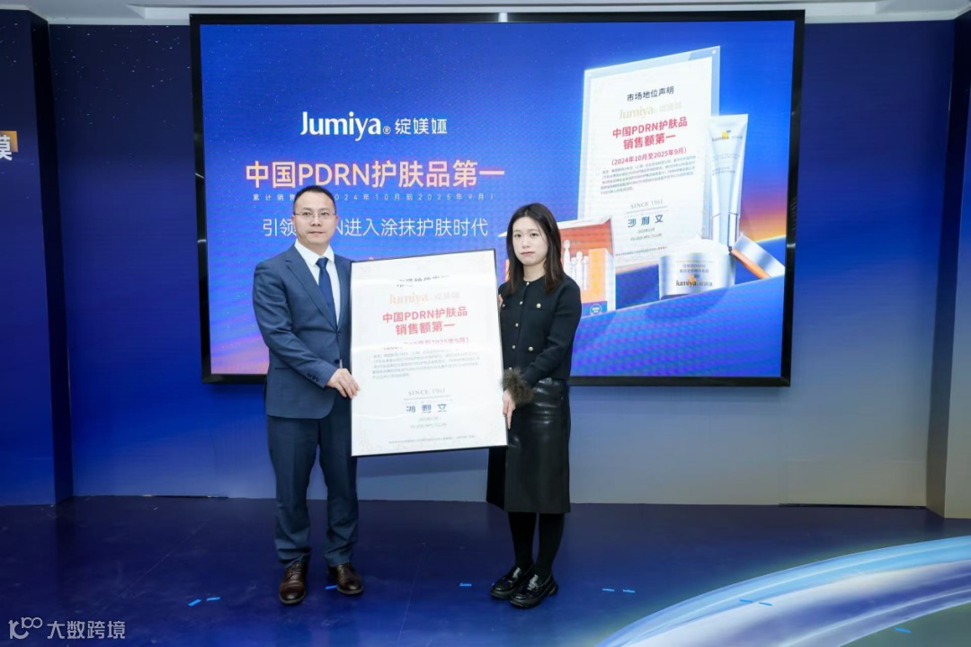 12月3日发布会现场,权威调研机构沙利⽂正式为绽媄娅颁发“中国PDRN护肤品销售额第⼀”的市场认证,确⽴了其在细分赛道中不可撼动的领导者地位。