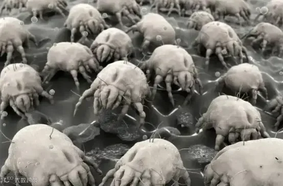 螨虫为肉眼难辨的体外寄生虫,牛羊易感种类主要为疥螨和痒螨。成虫近圆形或椭圆形,背隆起,乳白或浅黄色;螯肢钳状具小齿,须肢三节,足短粗呈圆锥形,前后两对足间距较大,足基部具角质内突。感染部位剧痒,动物频繁擦痒致丘疹、水泡、结痂、溃烂、脱毛及皮肤褶皱;严重时蔓延全身,引起消瘦甚至死亡。