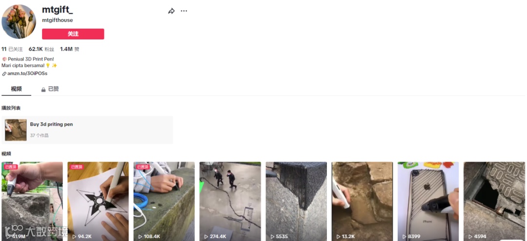 Shoptop通过观察“@mtgift_”账号主页发现,博主主要是分享各种创意礼物和3D打印笔的各种新奇玩法。