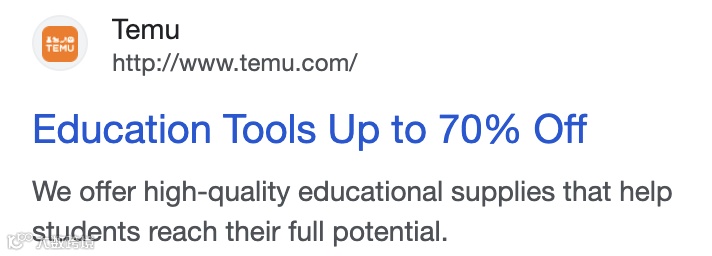 广告文案是简短的一句“优质产品的无与伦比的价格”,temu引流策略是把强调产品优质的重要性放在强调价格优惠前,对消费者来说,看视频留下的印象肯定比看图片或Html更深刻。