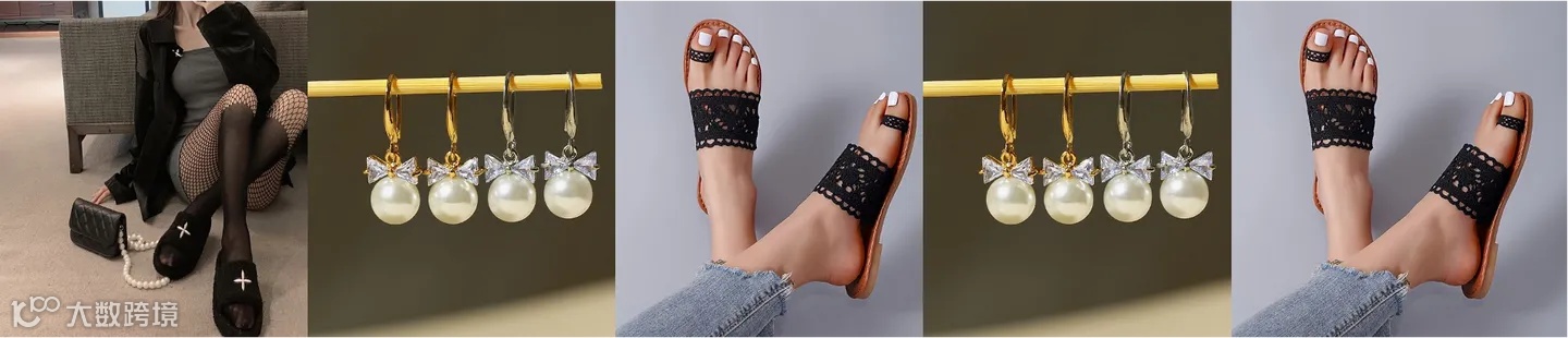 画面上,可以明显看出首图的元素丰富度要比后2张图高很多;商品方面,3款商品都是女士用品,组图商品面对某一类消费群体。