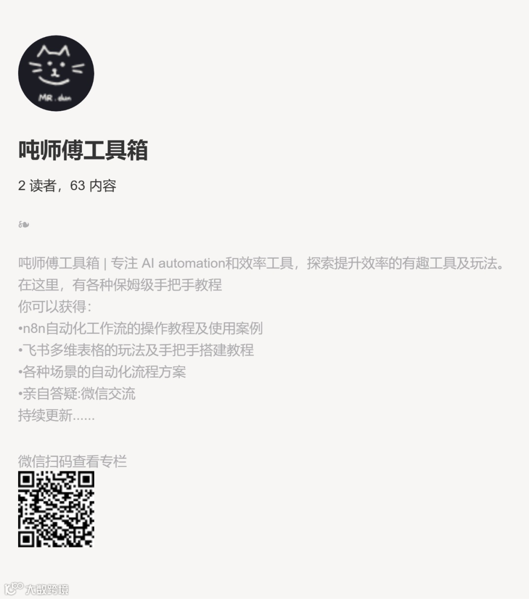 频道定位:聚焦「自动化工作流 + 低代码」实战,主推飞书多维表格、Make、n8n组合方案,解决真实业务提效难题。