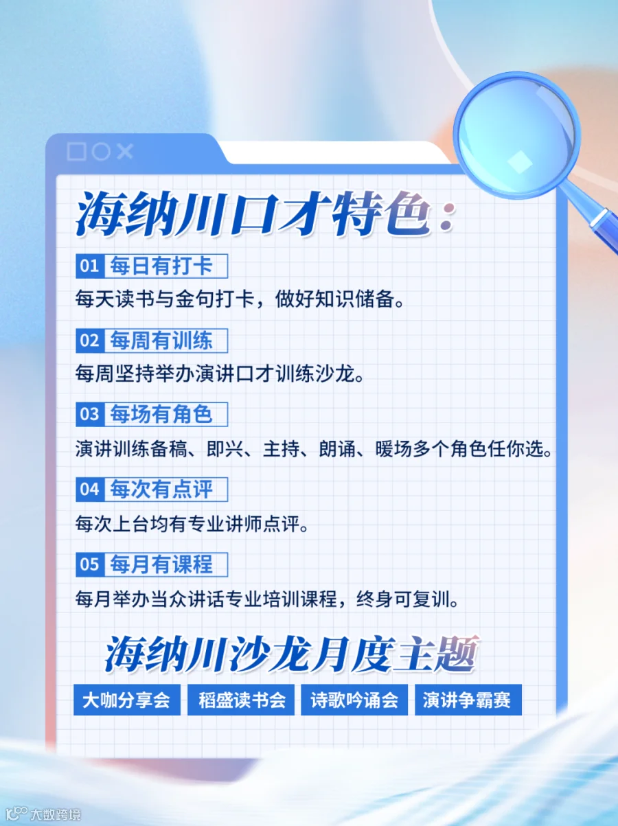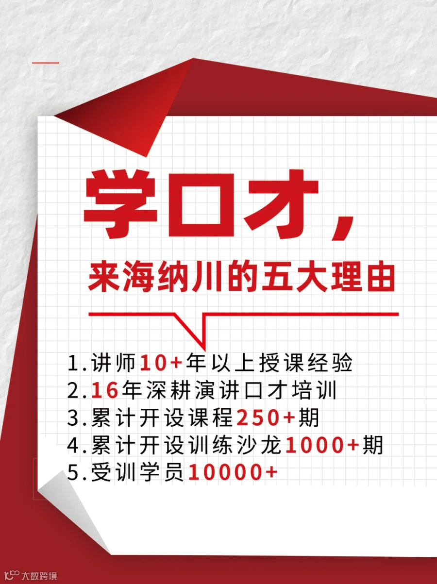 自2009年起,海纳川教育深耕演讲口才培训领域,累计开设口才课程超250期,举办演讲训练沙龙逾1000场。核心课程历经16年打磨,已形成涵盖培训、辅导、师资认证与连锁加盟的完整体系。