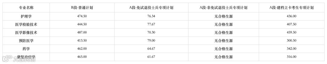 备注:其中医学检验技术1名、药学1名、护理学4名考生依据三等功鼓励政策录取。