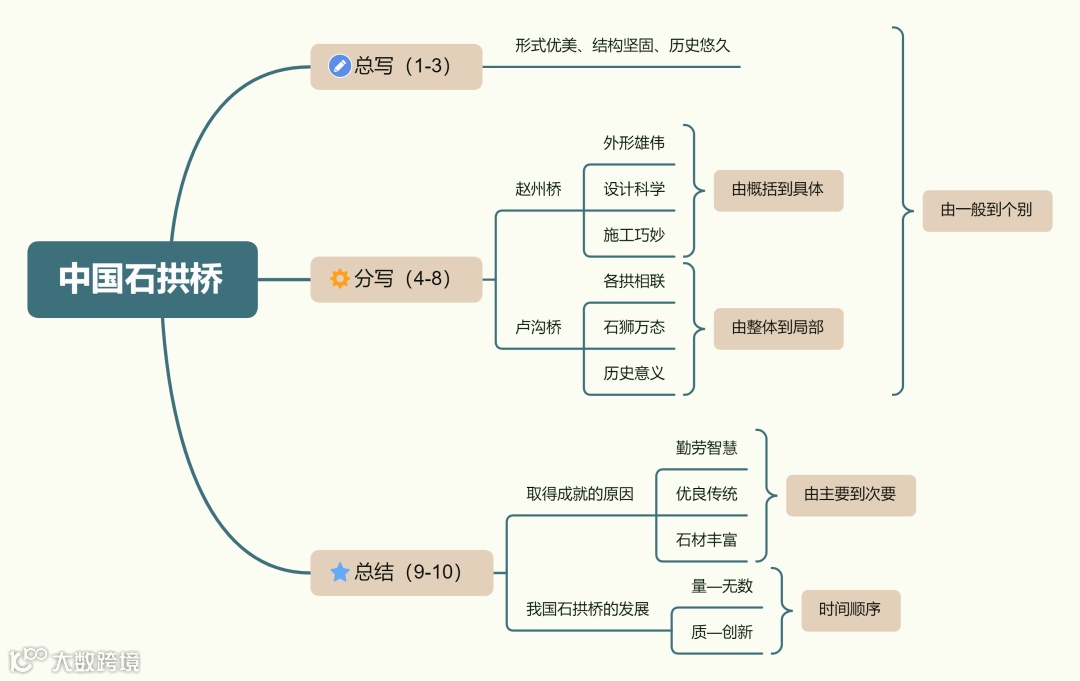 这种顺序安排既体现了说明文中“由浅入深、由简到繁”的逻辑顺序,也让读者能层层递进地感受中国石拱桥的多样性和技术高度。