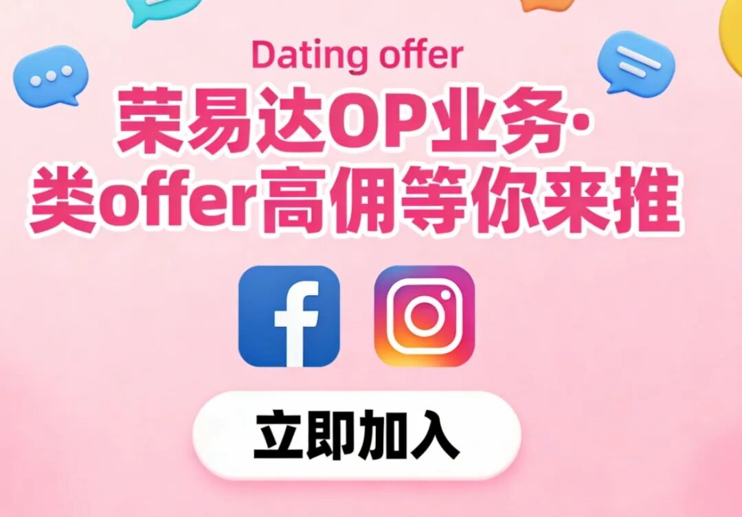 海外Dating市场的刚需属性,搭配“社媒钩子吸粉+私域深度转化”的OP推广路径,让这类offer成为当之无愧的“增量王牌”——既能快速完成FB/IG个人号养号涨粉,又能凭借灵活高佣的模式实现稳定变现,完美契合荣易达OP业务的核心优势。