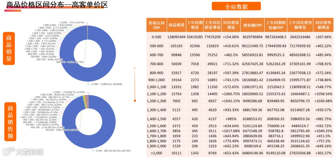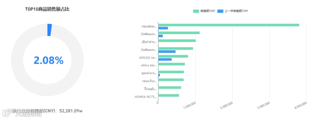 销售额TOP10商品占比相对分散,头部品牌虽具影响力,但中长尾市场空间充足;年度销售额持续攀升,印证市场渗透正加速深化。