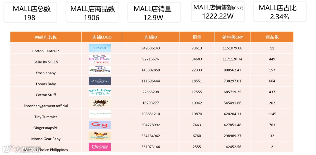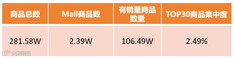 - Mall店铺商品数量最少(2.39万件,占比0.85%),动销率约40.9%,表现中等但规模有限。