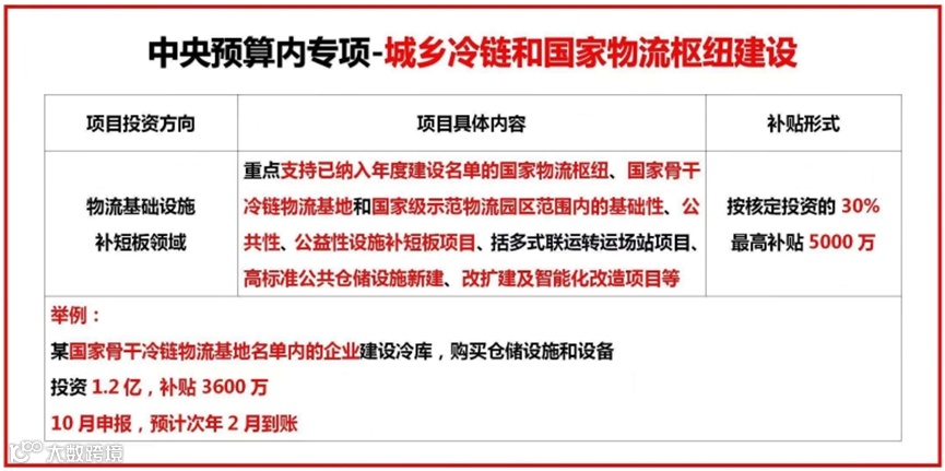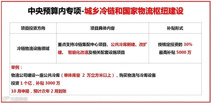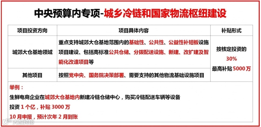 中央资金支持物流项目补贴方向汇总