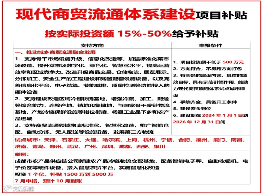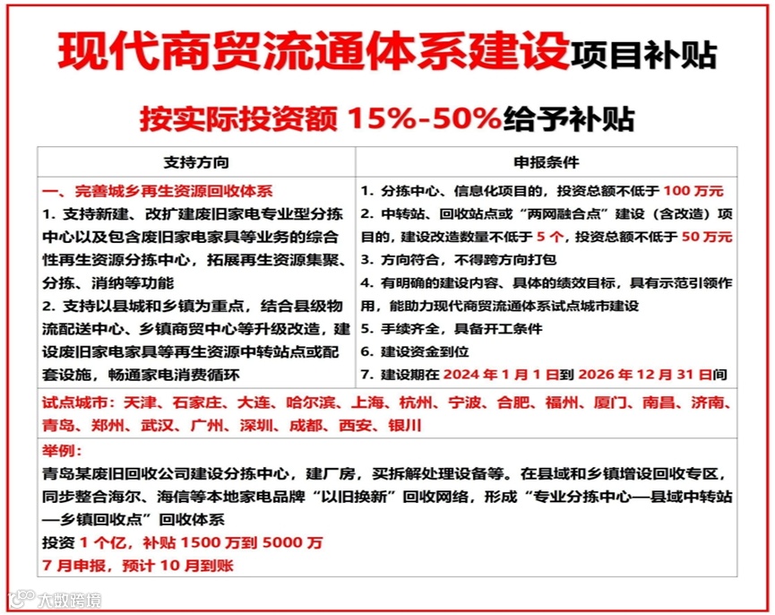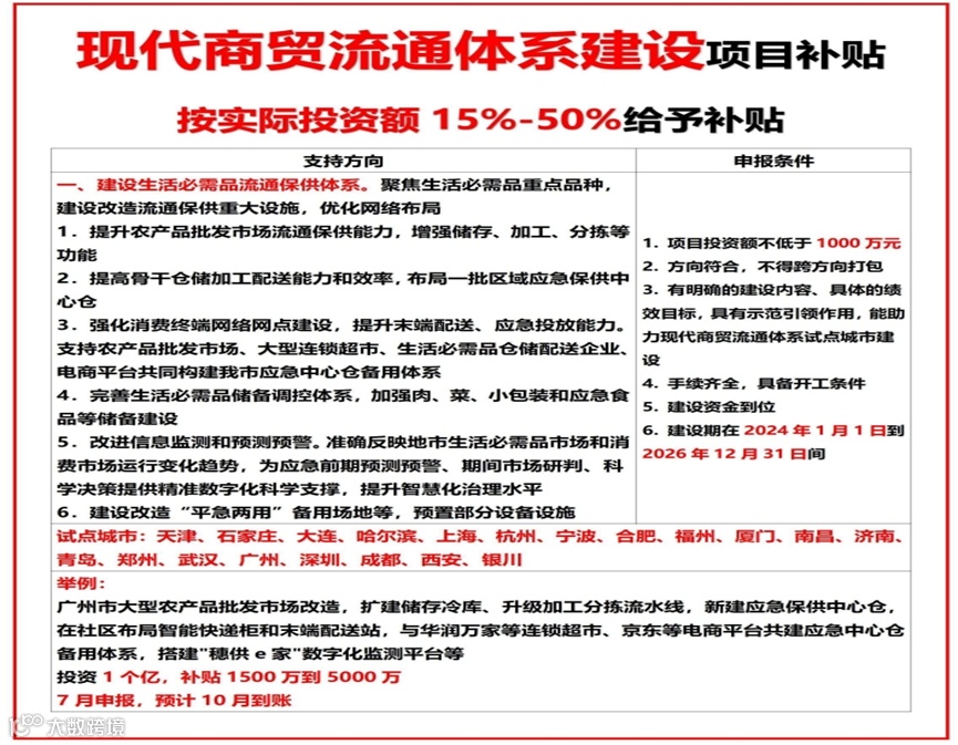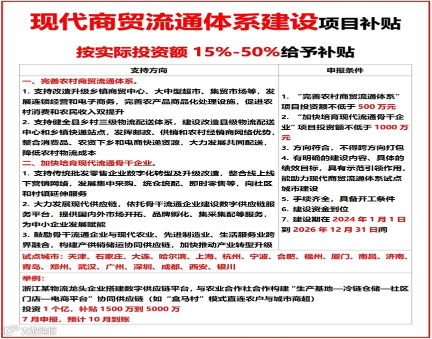 近年来,国家发改委、农业农村部、商务部等中央主管部门围绕“两重两新”“低碳环保”“物流枢纽”等重点领域,持续安排中央预算内投资及超长期特别国债资金,支持相关项目建设。本文梳理物流领域重点补贴方向及具体要求,供企事业单位参考。
