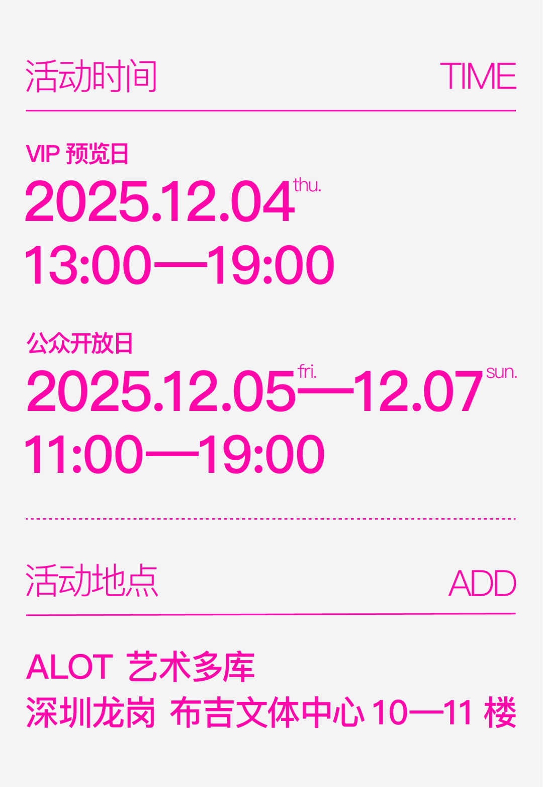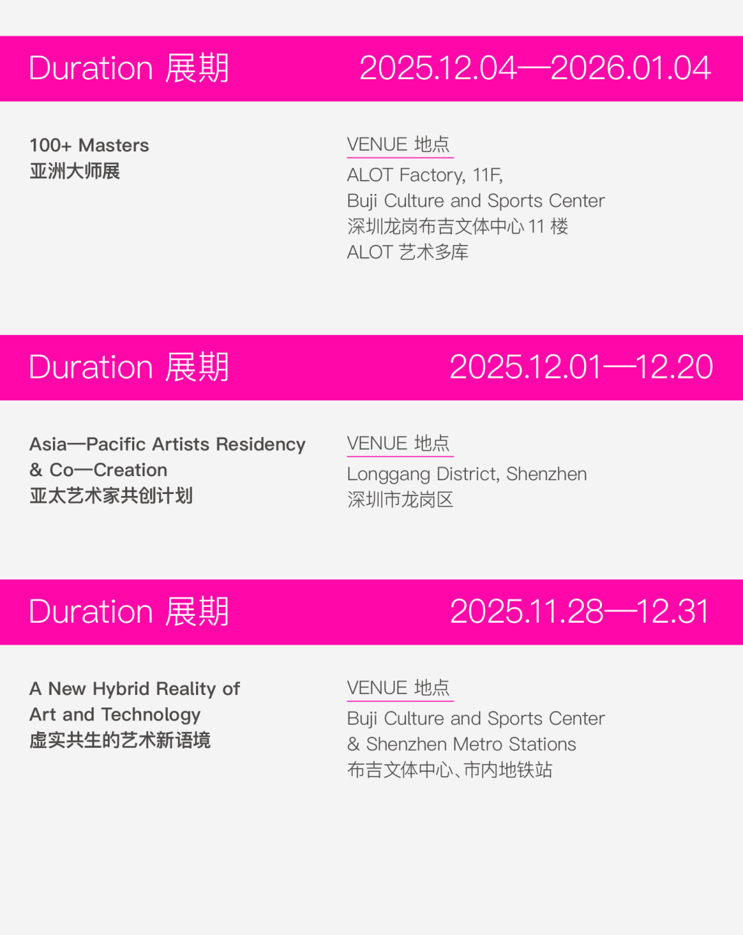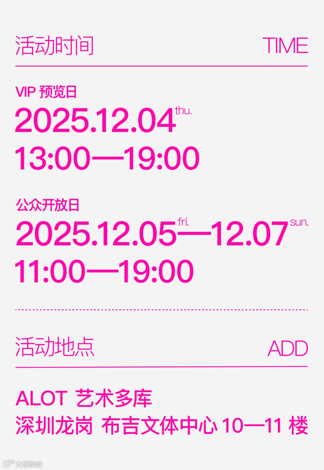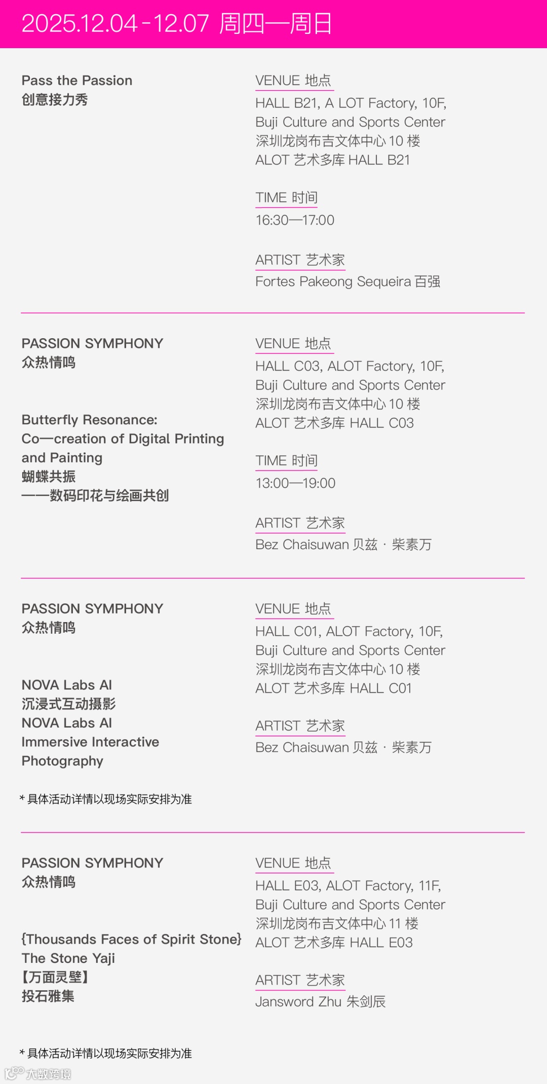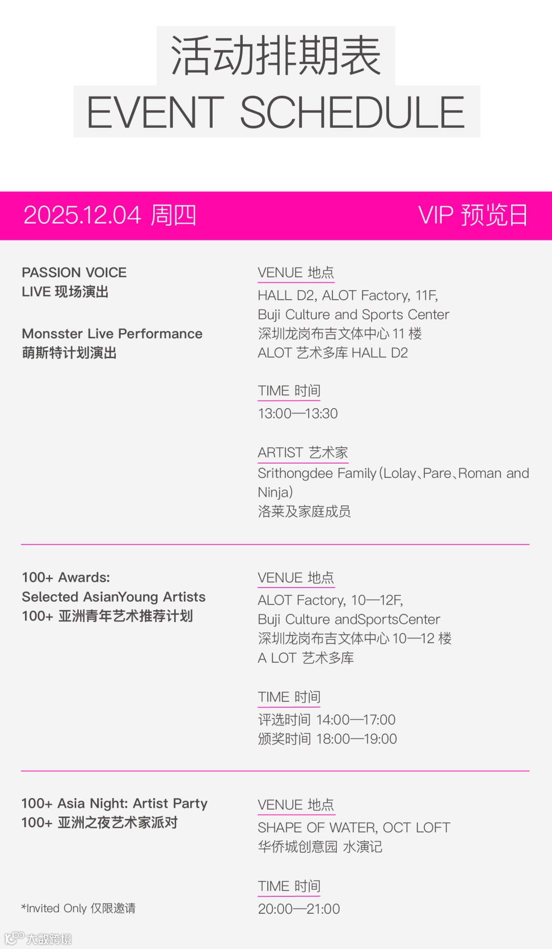 3. 留言互动将于12月4日9:00截止,发布君将在精选留言中随机抽取5位幸运粉丝,给每人送出2张「100+艺术季」公众票门票,凭中奖短信可在12月5日、6日、7日场次中任选一场前往参观。