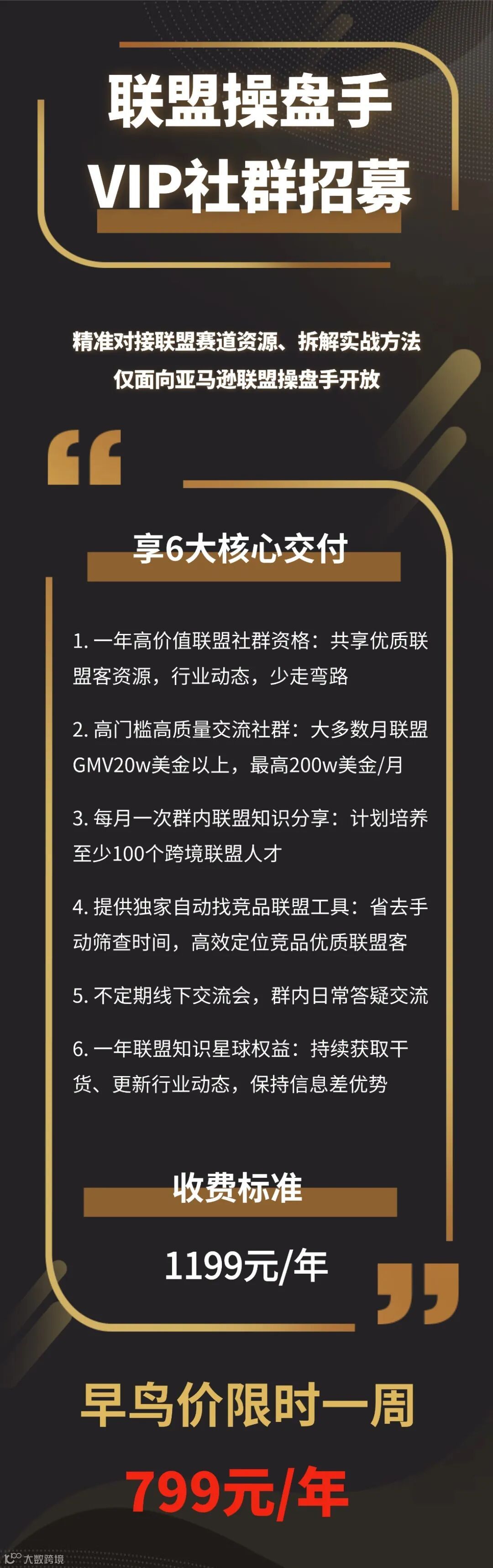 聚焦联盟实操痛点,拆解最新玩法,计划培养100+亚马逊联盟精英,同步前沿运营思路。