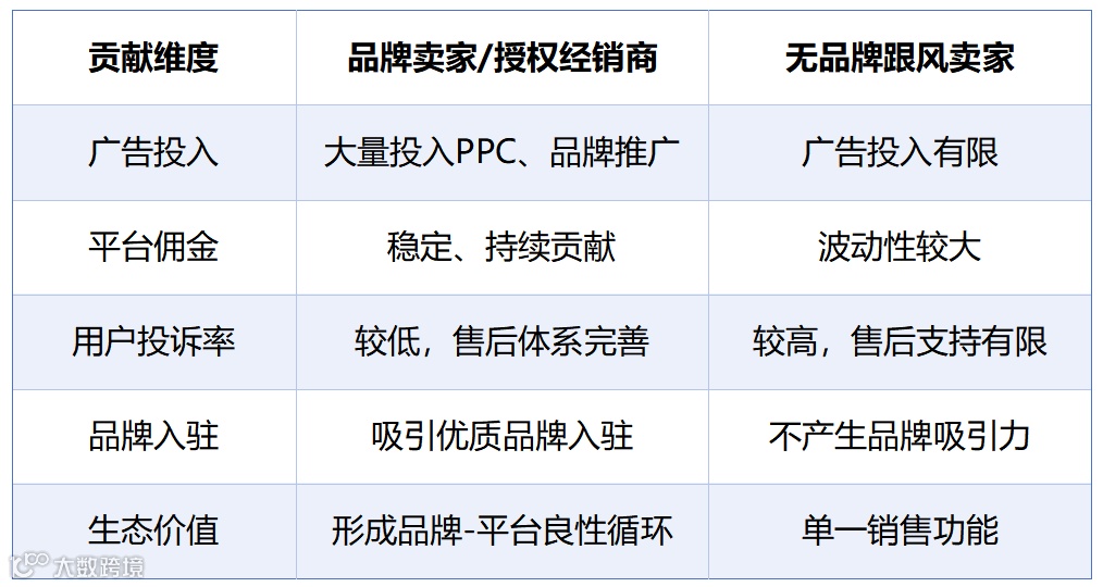 附表:品牌卖家与跟风卖家的平台贡献差异