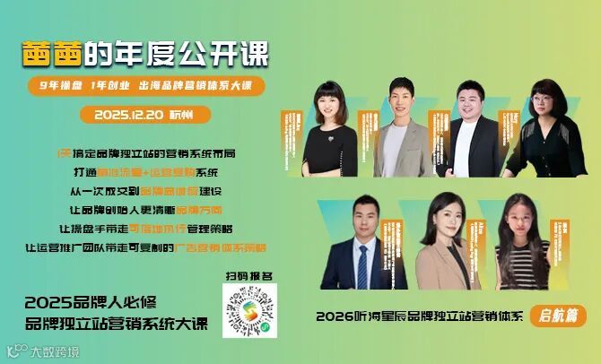 蕾蕾,9年品牌独立站操盘手、个体创业者,专注DTC品牌出海实战。目前正紧锣密鼓筹备12月20日在杭州举办的500人规模年度公开课。