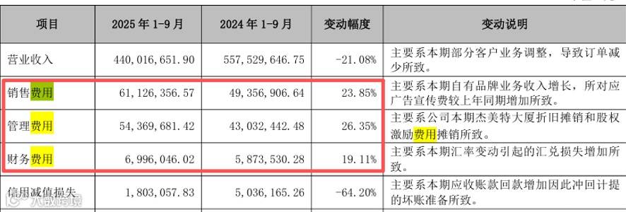 而面对经营困境,杰美特正积极推进自有品牌建设,但这条转型之路充满挑战——杰美特加大了广告宣传等市场投入,销售费用增长,反而加剧了亏损局面。