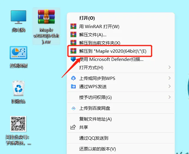1.右键点击【Maple v2020(64bit)】压缩包,选择【解压到 Maple v2020(64bit)】选项
