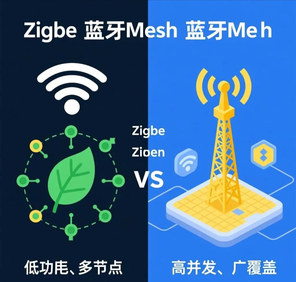 Zigbee与蓝牙Mesh是两种常见的低功耗无线通信技术,它们在多个方面存在区别,以下是主要差异: