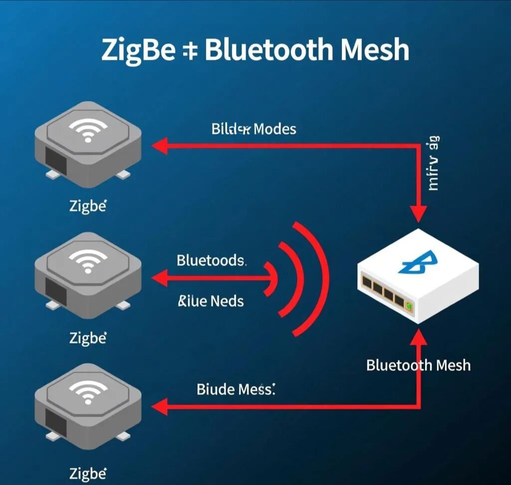 总结来说,Zigbee更适合固定设备、复杂环境和对稳定性要求高的场景,如工业自动化、智能电网等;蓝牙Mesh则更适合移动节点较多、强调低成本部署和智能手机直接控制的应用,如智能照明、智能门锁等。具体选择需根据实际应用场景和需求决定。