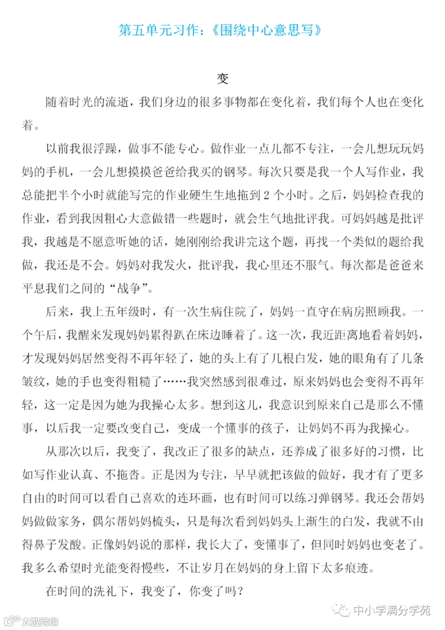 部(统)编六年级语文上册:第五单元习作《围绕中心意思写》范文5篇