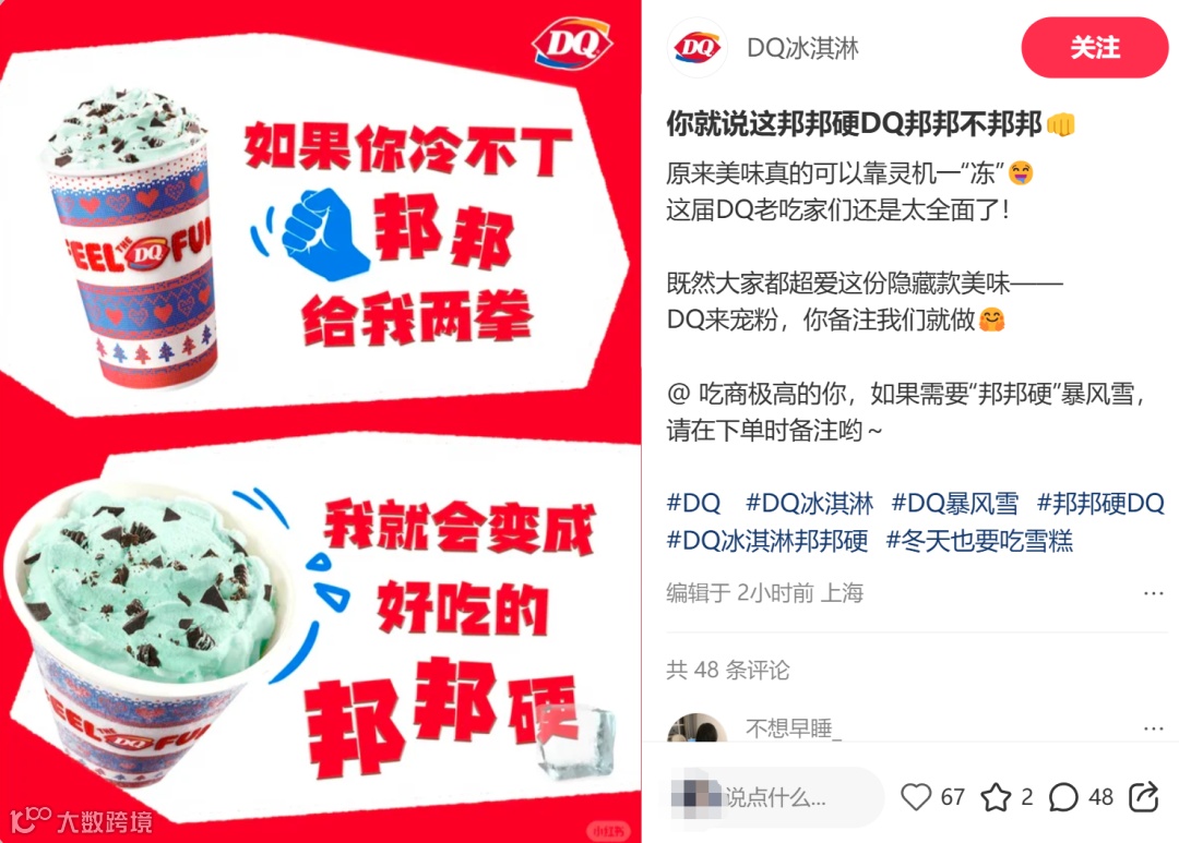 而DQ官方也没有错过这波“天降热度”,火速上线了“邦邦硬暴风雪”的点单提醒。
