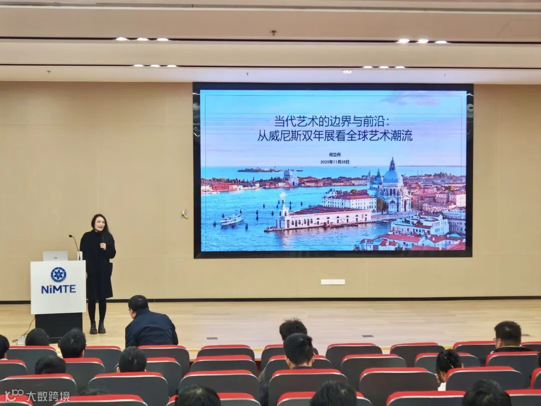 2025年11月28日,中国科学院大学宁波材料工程学院举办人文社科与艺术系列讲座第18讲。艺术教育专业何立丹博士担任主讲嘉宾,作题为《当代艺术的边界与前沿:从威尼斯双年展看全球艺术潮流》的专题报告。讲座由宁波材料所研究生处副处长陈益林主持,近百名师生及艺术爱好者现场参与。