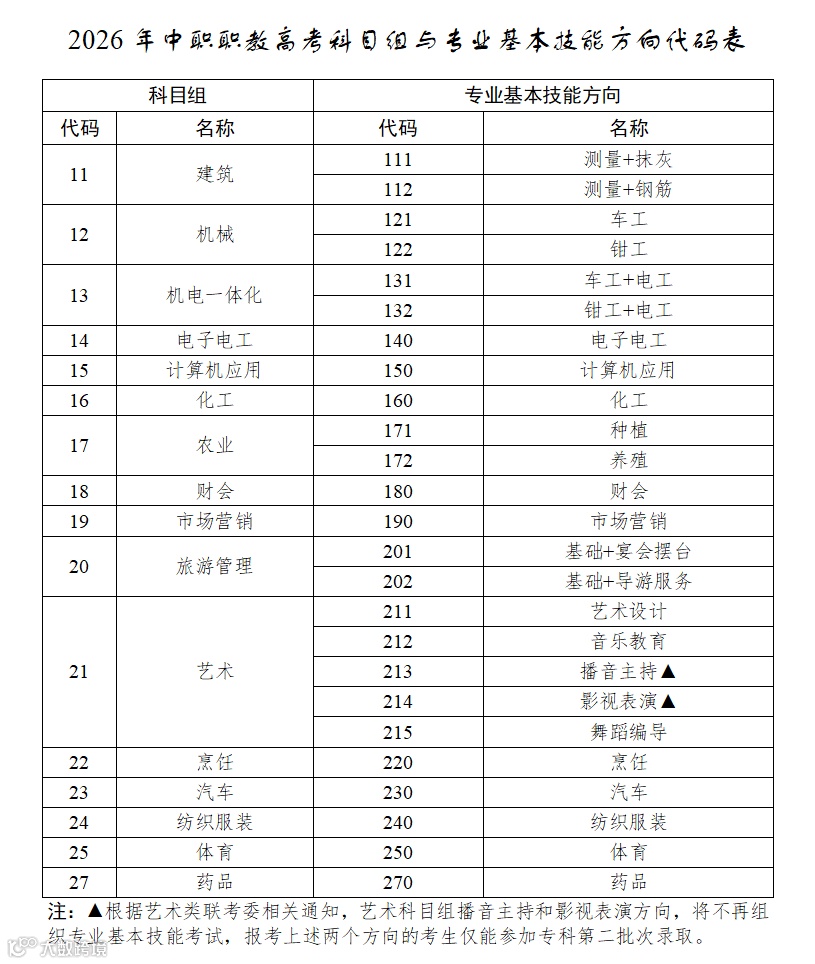 (四)考生填报的专业志愿必须与报名时所报科目组相符,农业和艺术科目组考生填报的专业志愿必须与报名时所报专业基本技能方向相符。