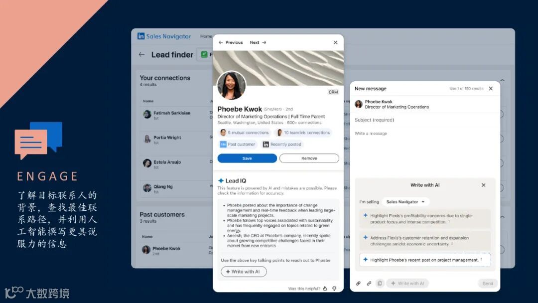 但换个视角:这类未成交客户实为一颗“金种子”。借助领英高级会员与AI智能体组合工具,系统可基于单个客户自动裂变出100个高度匹配的精准买家,全程无需人工搜寻。