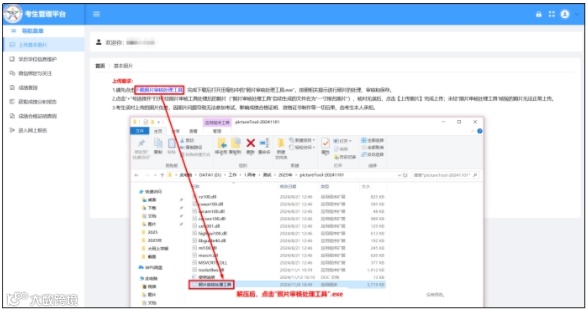 (1)认真阅读上传照片要求,下载“照片审核处理工具”,解压后点击“照片审核处理工具.exe”。