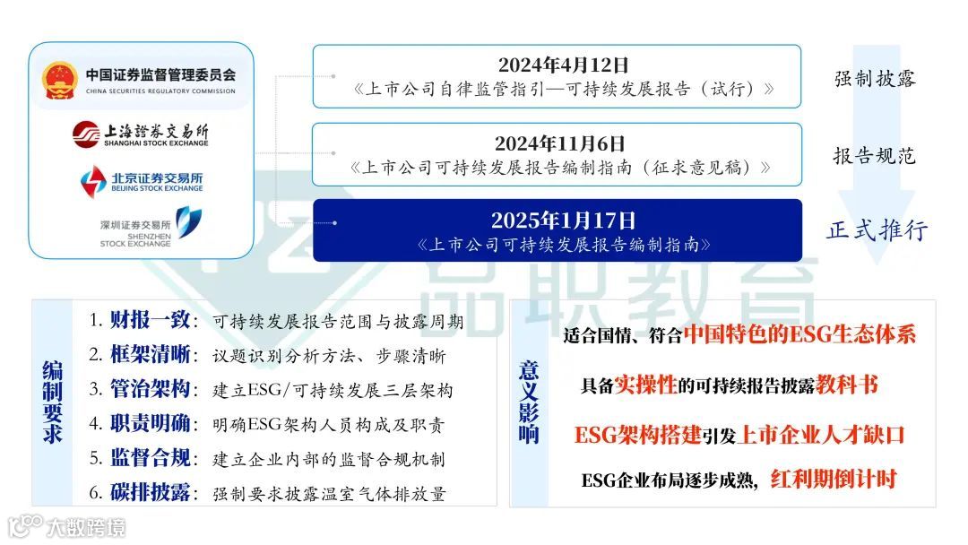 2024年4月12日,三大交易所《上市公司可持续发展报告指引》正式发布,自2024年5月1日起实施,说明上市公司ESG强制披露的时代已经来临。