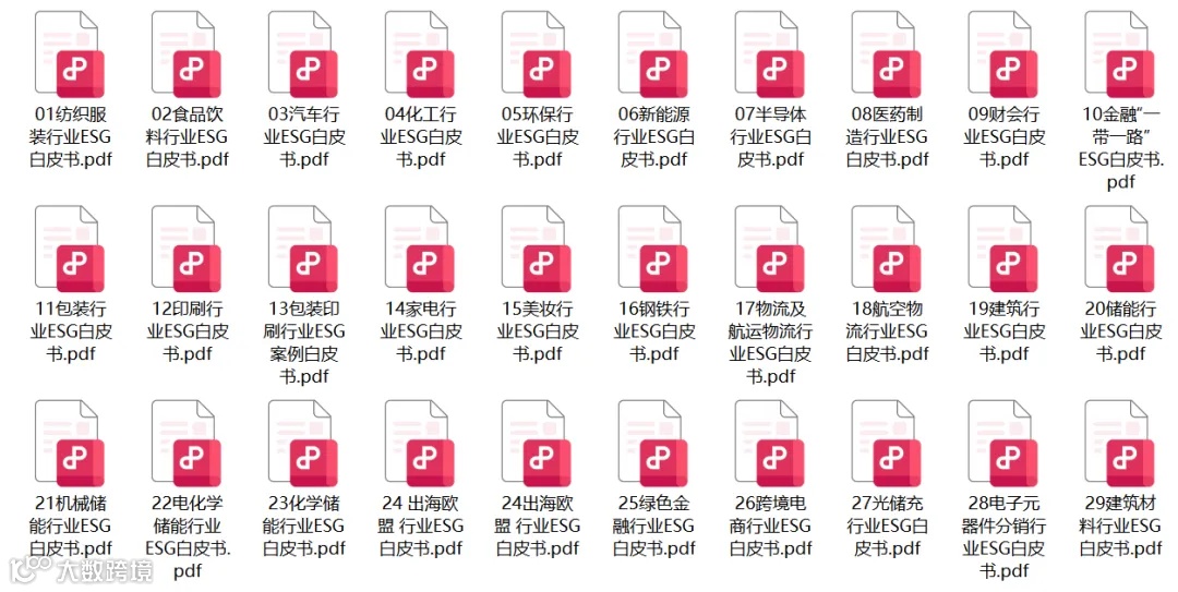 品职汇总了45份ESG各行业深度研究白皮书,包括财会、出海、环保、汽车、能源、建筑、半导体、金融等行业,目前行业还在继续增加中。
